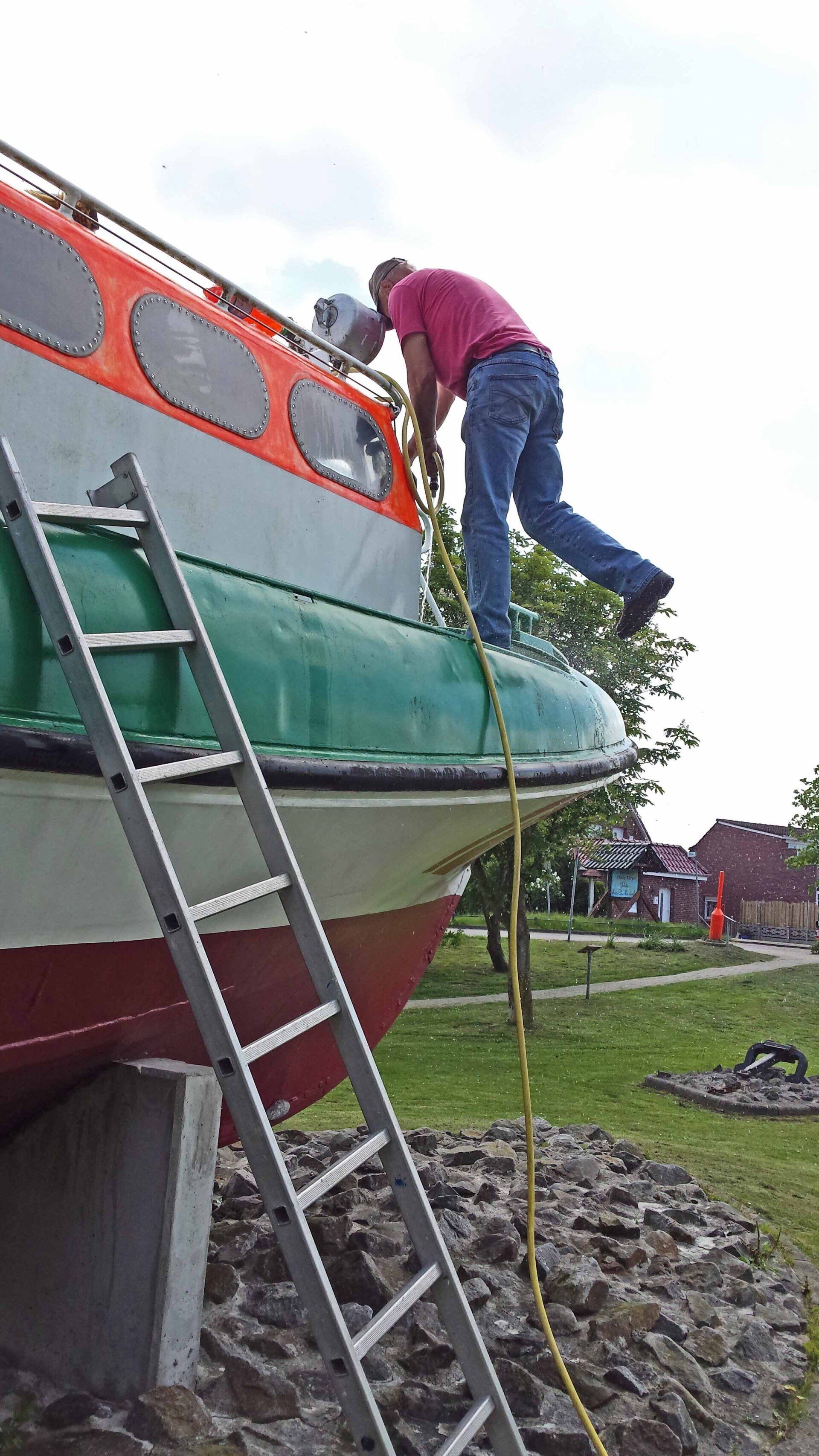 Am vergangenen Samstag (14.10.) erhielten wir Besuch von der Insel Langeoog. Dort ist das Seenotrettungsschiff "Secretariuus" stationiert. Der Vormann Sven Klette mit seiner Crew lebt ebenfalls auf der Insel. Der Grund für diesen Besuch lag darin, dass die Dorfgemeinschaft Dornumersiel im letzten Jahr einen Überlebensanzug für die Seenotretter gesponsert hat. Wir konnten ihn bereits im März 2022 hier in unserem Hafen übergeben. Aufgrund der Corona-Pandemie war es jedoch nicht möglich, dass die Mannschaft längere Zeit hier im Hafen verweilt oder dass wir das Schiff besichtigen konnten. Damals versprach uns Sven Klette, dass er noch einmal nach Dornumersiel kommen würde, sobald sich die Situation verbessert hat. Dieser Besuch fand nun am vergangenen Samstag statt. Ganz herzlichen Dank dafür!