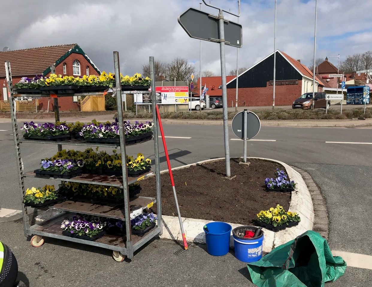 auch diesmal wieder die Stiefmütterchen gesponsert. Geliefert hat die über 400 Pflanzen in diesem Frühjahr das Blumencenter Diekmann in Dornum.