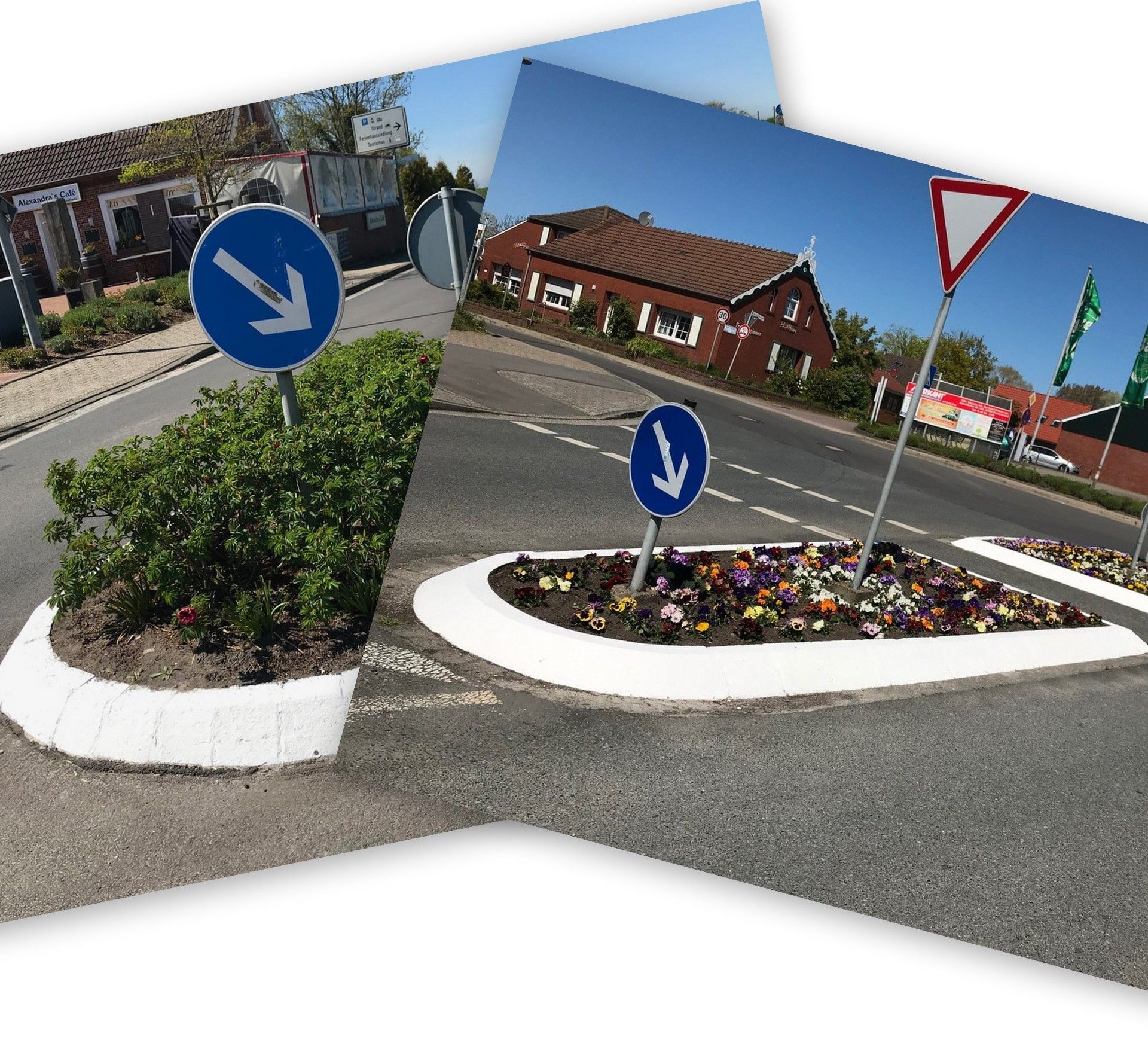 für uns kostenlos die Einfassung dieser Verkehrsinseln bei Markant und an Up Börs neu gestrichen.
