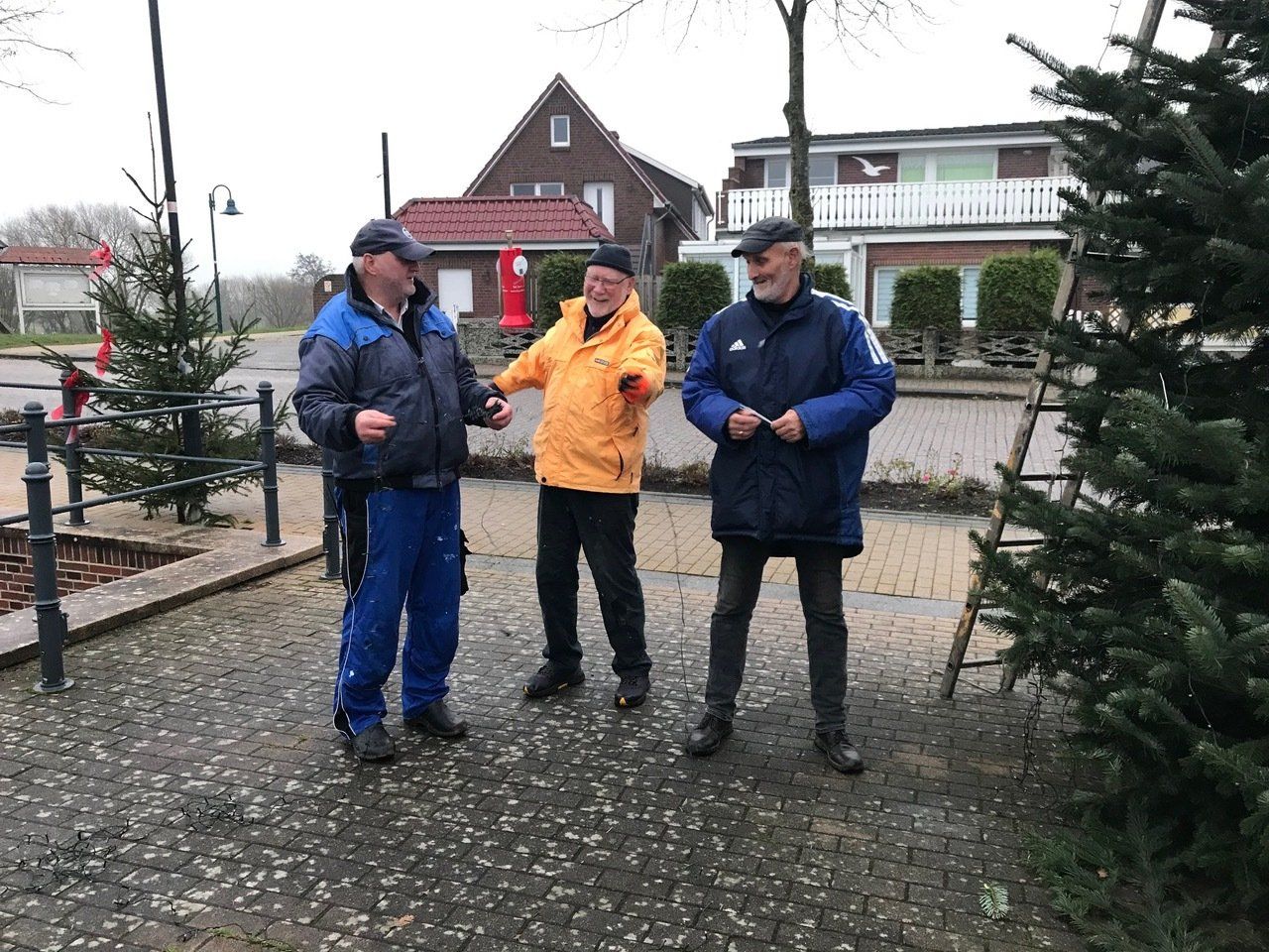 An unserem Baum am Oll Hafen waren die Lichter ausgegangen. Kurzschluss durch Feuchtigkeit. Uwe Caspers hat sich schnell um Ersatz bemüht und diesen dann zusammen mit Onno Kruse und Claus Schnoor neu installiert. Zum 4. Advent leuchtet der Baum schöner als zuvor!