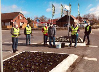 Auch Corona konnte uns nicht davon abhalten, hier im Ort den Frühling einzuläuten. Die Gemeinde befreite unsere Rosen-und Lavendelbeete vom Winter, Bernhard Heeren vom Markant sponserte die Stiefmütterchen für die Verkehrsinseln.