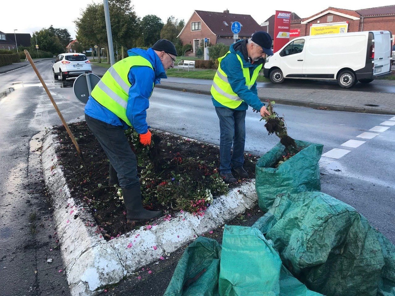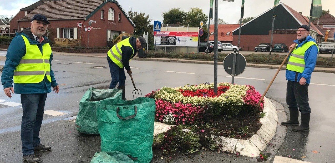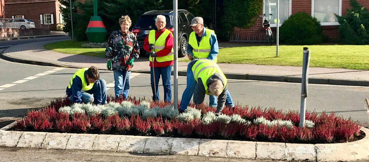 Am nächsten Tag haben Elfriede Caspers, Helga und Cornelius Harms, Ursel Palma und Monika Schnoor die Verkehrsinseln neu bepflanzt. Margot Jansen hat alles organisiert und Fahrdienste geleistet.