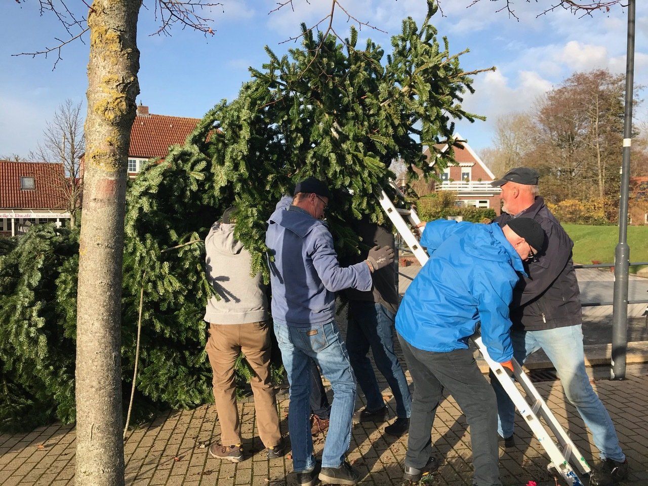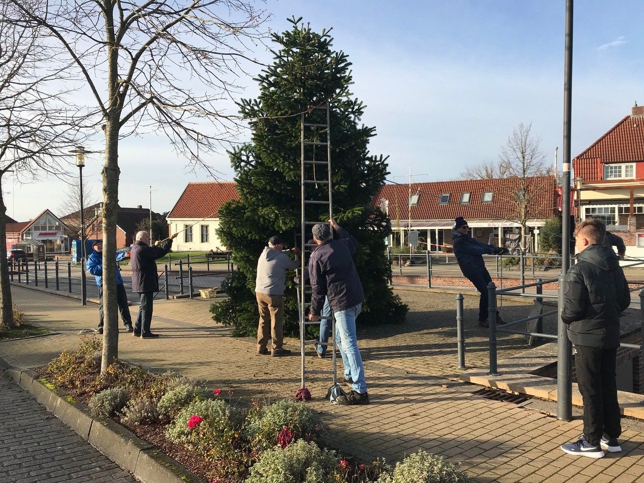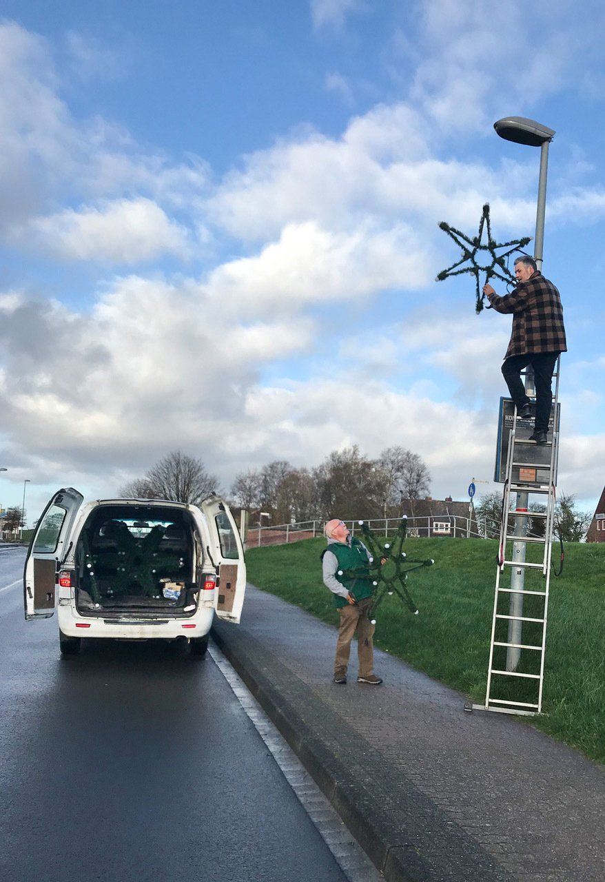 Vor dem 1. Advent sind Ralf van Osten und Martin Lindemann durch den Ort gefahren und haben die Weihnachtsbeleuchtungen angebracht. Am gleichen Tag haben fleißige Dorfbewohner am Oll Haven für uns alle einen Weihnachtsbaum aufgestellt.